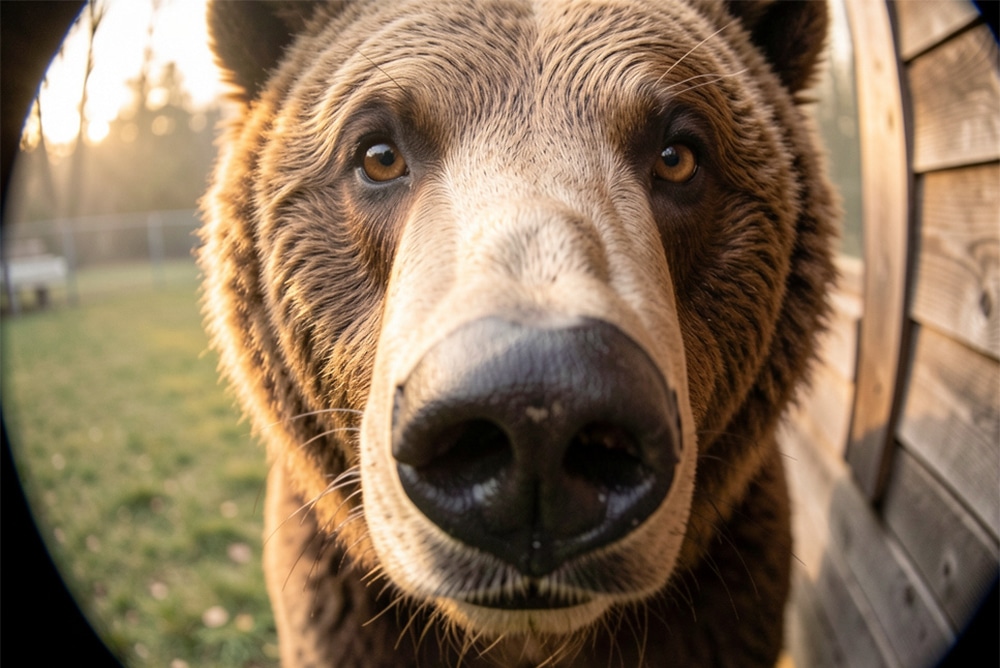 There it was again, just as it had been the two days before. The bear walked up straight to her front door and pressed its nose against the peephole.