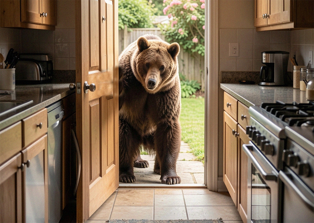 Emma grabbed Rose’s hand and raced for the stairs just as the door popped open with a loud snap. The bear’s head appeared in the kitchen, its massive frame filling the doorway with ease.