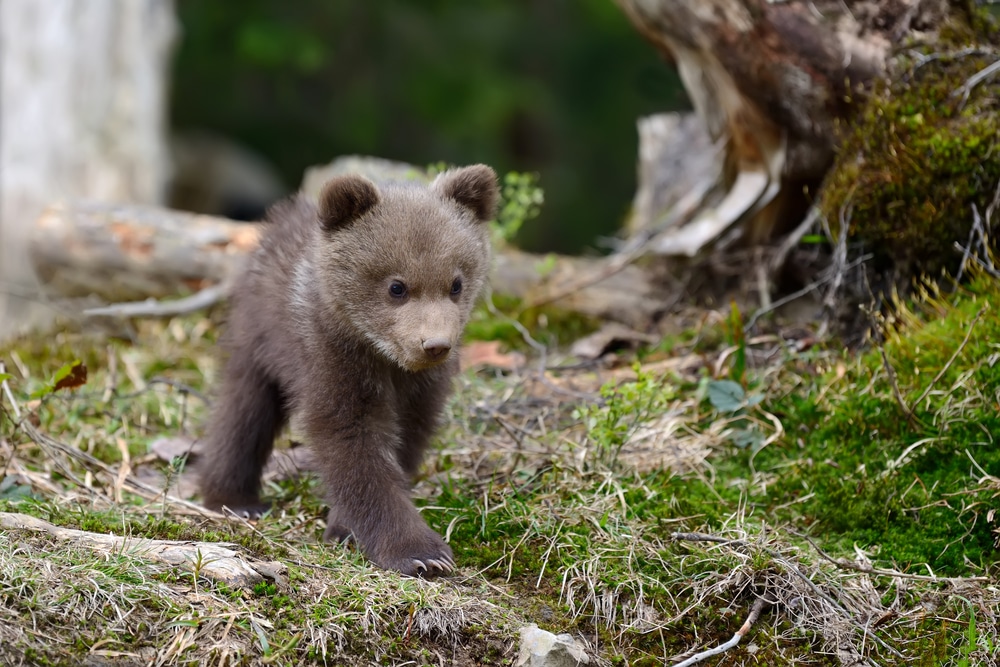 The large bear immediately lowered her head and gently nuzzled the small cub, letting out a deep rumbling sound that echoed warmly across the quiet forest clearing.